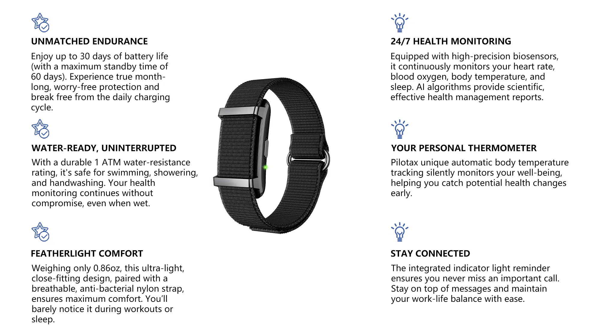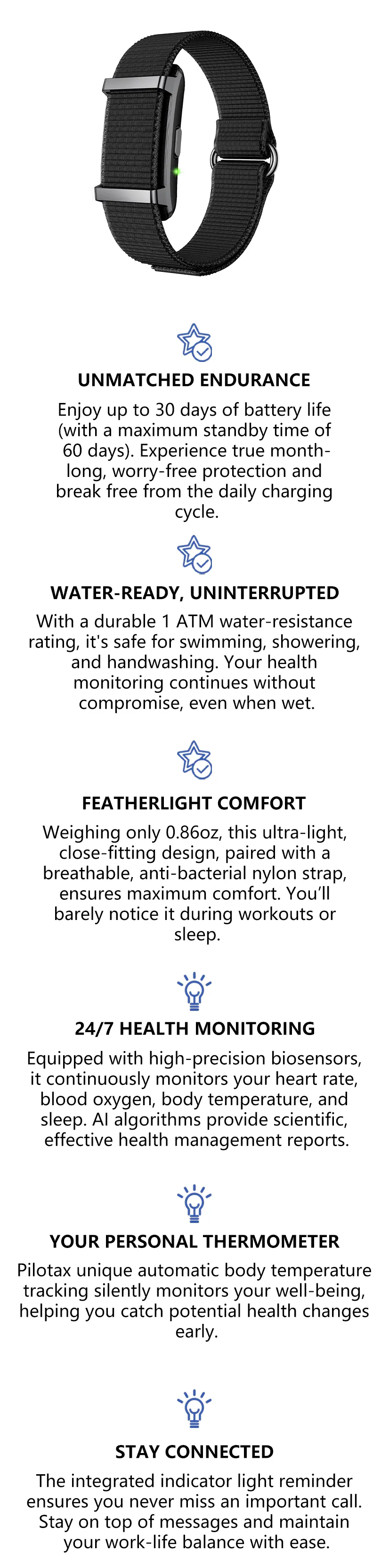 Pilotax Health Tracker Smart Bands Real-Time Monitoring, Health Protection Around the Clock, Barely Noticeable Wear.